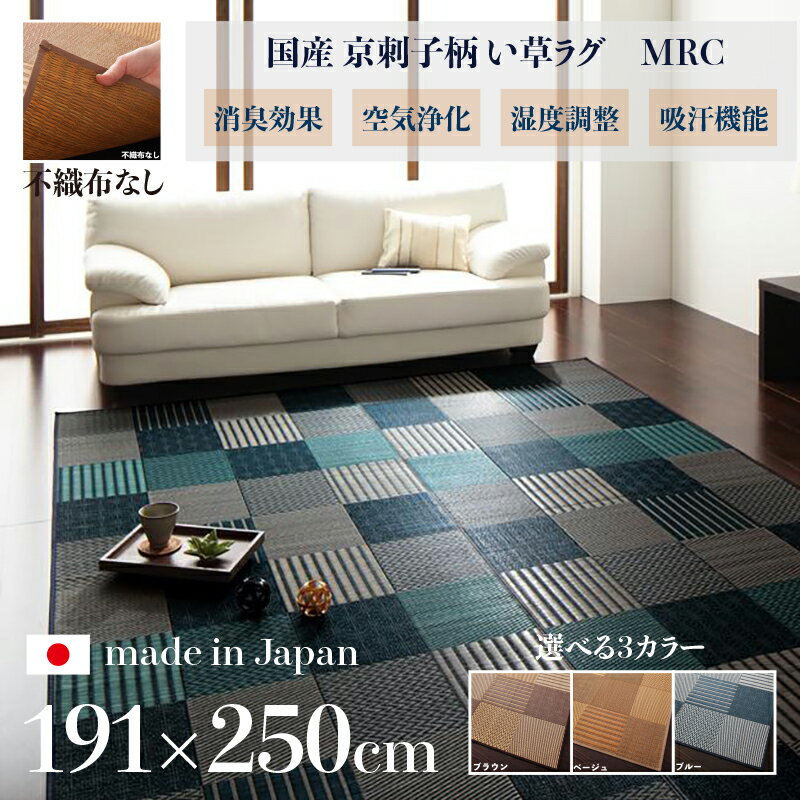 商品名 国産 い草ラグ MRC 畳ラグ 夏ラグ い草カーペットサイズ 幅191 奥行250cm日本製 イ草 TATAMI タタミ たたみ ラグマット軽量 傷防止 防臭 ひんやり 和モダン おしゃれ 絨毯和室 和風 モダンデザイン ゴザ 寝ござ 寝ゴザ 夏ラグマット 夏用 北欧