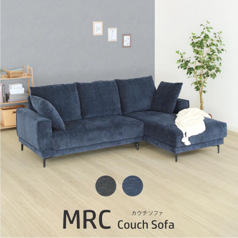 ソファ カウチソファ L字ソファ 2人掛け 3人掛け 幅210cm 座面高39cm 肘付き 肘あり クッション付き ロボット掃除機対応 ファブリック ブルー グレー おしゃれ 北欧 ナチュラル MRC