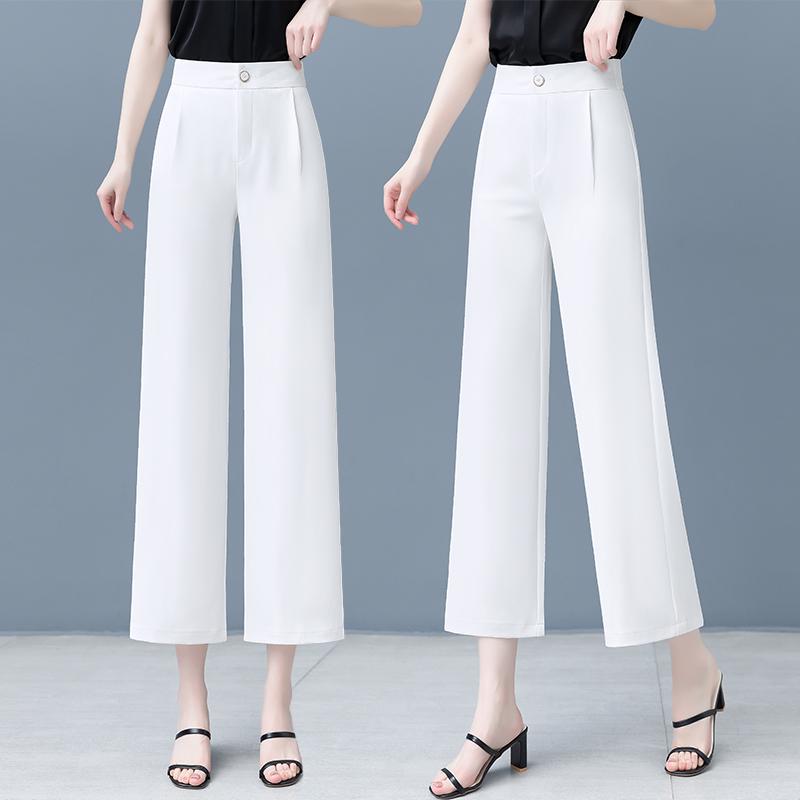 秋コーデ レディース ファッション シフォン ワイドレッグ パンツ 細身 スタイル スーツ ハイウエスト 九分丈 ストレート