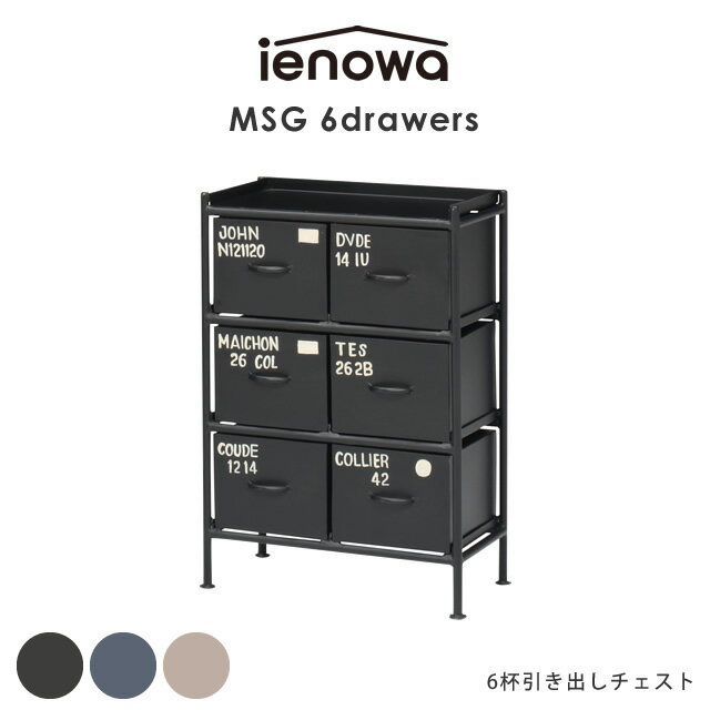 6杯引出チェスト MSG ienowa イエノワ 収納家具 収納 リビング 整理 チェスト 押入れ 引出し ロッカー 3段 スチール アイアン インダストリアル 黒 ブラック グレー ベージュ ヴィンテージ 男前 インテリア おむつ 入れ