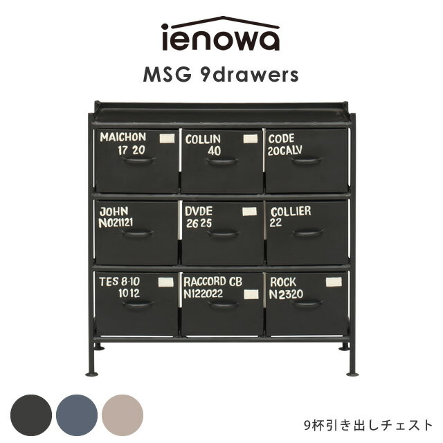 9杯引出チェスト MSG ienowa イエノワ 収納家具 収納 リビング 整理 チェスト 押入れ 引出し ロッカー 3段 スチール アイアン インダストリアル 黒 ブラック グレー ベージュ ヴィンテージ 男前 インテリア おむつ 入れ