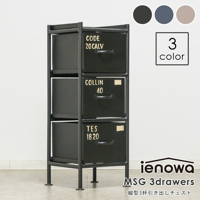 縦型3杯引出チェスト MSG ienowa イエノワ 収納家具 収納 リビング 整理 チェスト 引出し ロッカー 3段 スチール アイアン インダストリアル 黒 ブラック グレー ベージュ ヴィンテージ 男前 インテリア 小物 洋服 収納