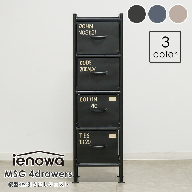 縦型4杯引出チェスト MSG ienowa イエノワ 収納家具 収納 リビング 整理 チェスト 引出し ロッカー 4段 スチール アイアン インダストリアル 黒 ブラック グレー ベージュ ヴィンテージ 男前 インテリア 小物 洋服 収納