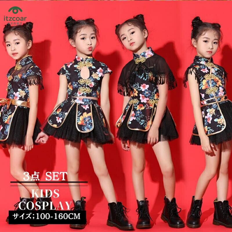 キッズ チアガール 中華風 衣装 子供 チアダンス 子供用 こども ガールズ 余興 コス チア ユニフォーム ハロウィン 仮装 ジャズダンス 女の子 男の子 ステージ衣装 ジュニア キッズ衣装 ダンスウェア チアリーダー ヒップホップ ダンス衣装 コスチューム MTEL42