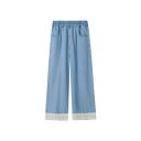 デニムパンツ 女の子 女児 キッズ ガールズ ゆったり ルーズ ワイド ストレート 綿 リヨセル 再生繊維 柔らか 通気性 涼しい 無地 ミッドウエスト ウエストゴム カジュアル 普段使い 着回し抜群 春夏 ロングパンツ