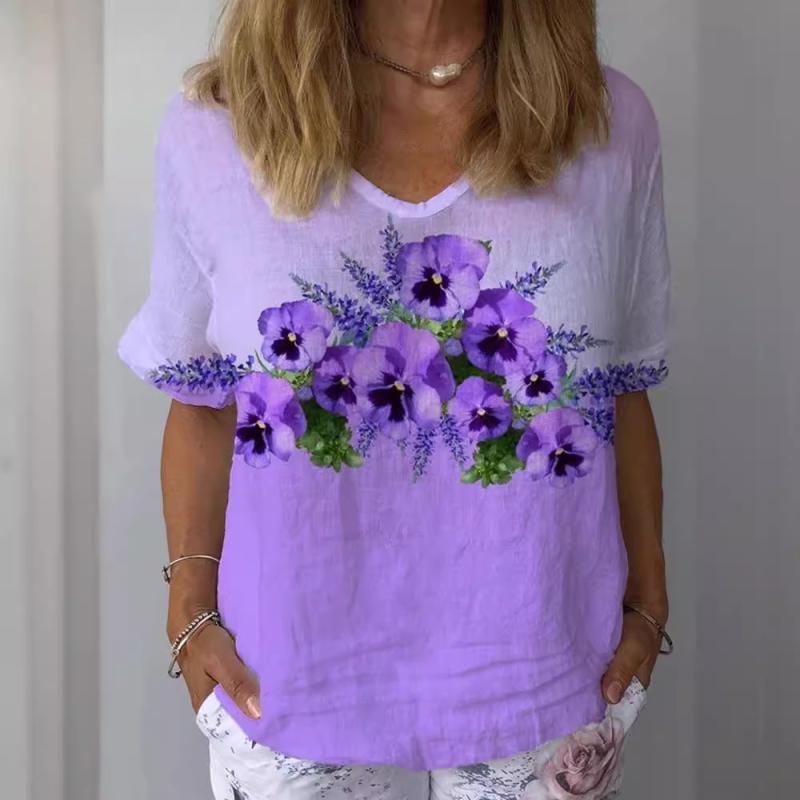 Tシャツ レディース Vネック 半袖 3Dデジタルプリント柄 オーバーサイズ 普段使い 部屋着 大人カジュアル 夏物 ファッション トップス(x2)