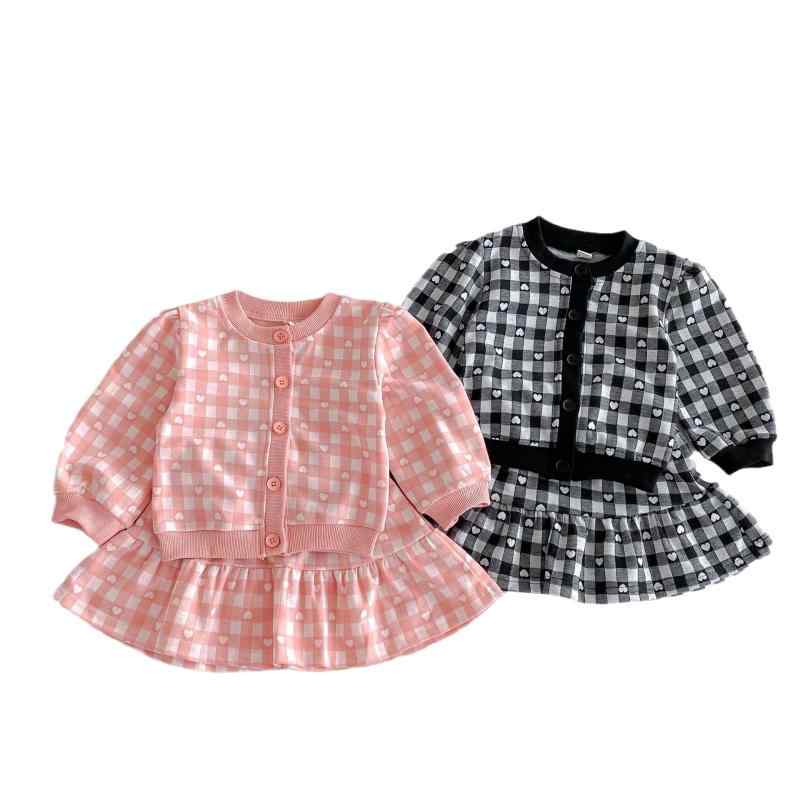 キッズ 女の子 セットアップ 格子柄 カーディガン スカート 2点セット 春秋 綿 かわいい 普段着 お出かけ着 韓国風 80 90 100 110 120 130cm