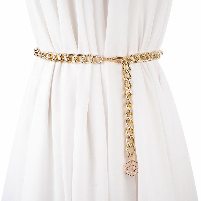 ベルト ウエストチェーン レディース メタル 細身 ゴールド シンプル カジュアル 万能 ワンピース ドレス コーデ アクセサリー(x2)
