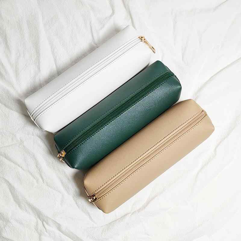ペンケース 革 レザー PU 大人 レディース メンズ 学生 筆箱 雑貨 文房具 大容量 ジッパー 収納ポーチ シンプル 無地 おしゃれ カーキ 黒 白
