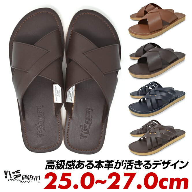 メンズ サンダル 革 レザー 本革 つっかけ 歩きやすい ブランド おしゃれ メンズサンダル 茶色 ネイビー 春 夏 春夏 25cm 26cm 27cm VIVA GRAFFITI ビバグラフィティ ブラックフライデー クリスマス