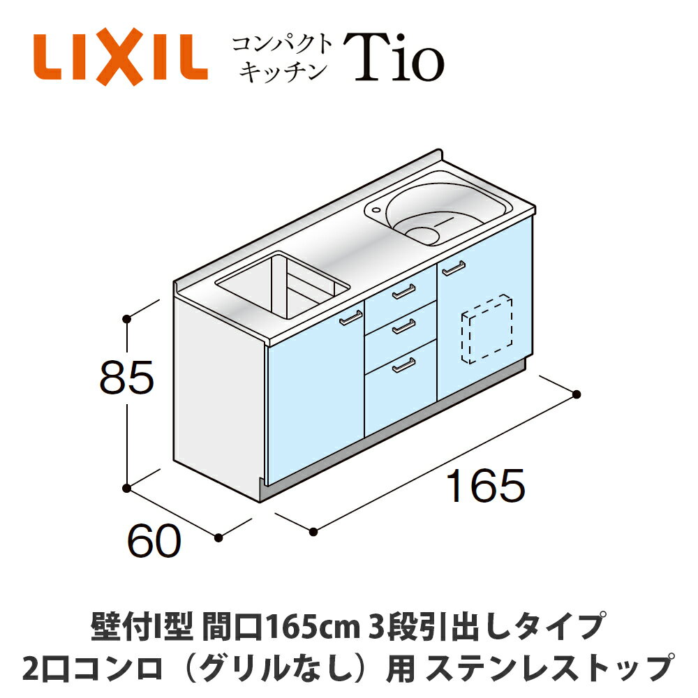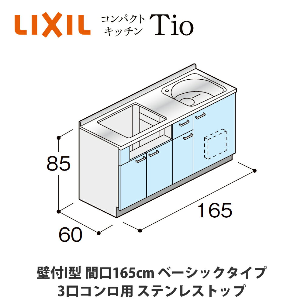 送料無料でお届け!LIXIL【コンパクトキッチンTIOシリーズ 壁付I型 間口165cm ベーシックタイプ 3口コンロ対応 ステンレストップ MWF0X16(G/H/J)AB◆◆◆◆(R/L)】