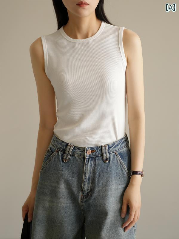 レディース タンクトップ フィット Ukos 木質 繊維 レディース ワイド ショルダー ラウンドネック ベスト 薄手 スタイル サイド ブレスト カバー スリム ノースリーブ Tシャツ 夏服