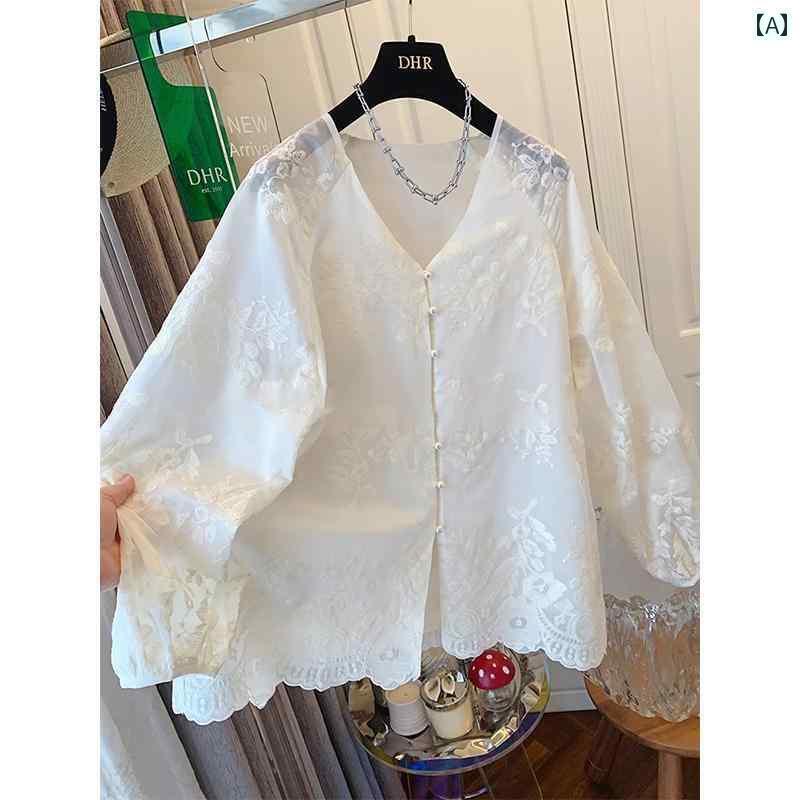 レディース トップス かわいい 女性用 ホワイト レース シャツ 2025 春 高級 刺繍 大きいサイズ チャイナ風 トップス