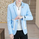 ["テーラードジャケット メンズ スリムフィット 配色デザイン 長袖 韓国風 おしゃれ カジュアル ビジネスカジュアル 秋冬 ポリエステル シングルボタン ライトアウター", "テーラードジャケット メンズ スリムフィット 配色デザイン 長袖 韓国風 お