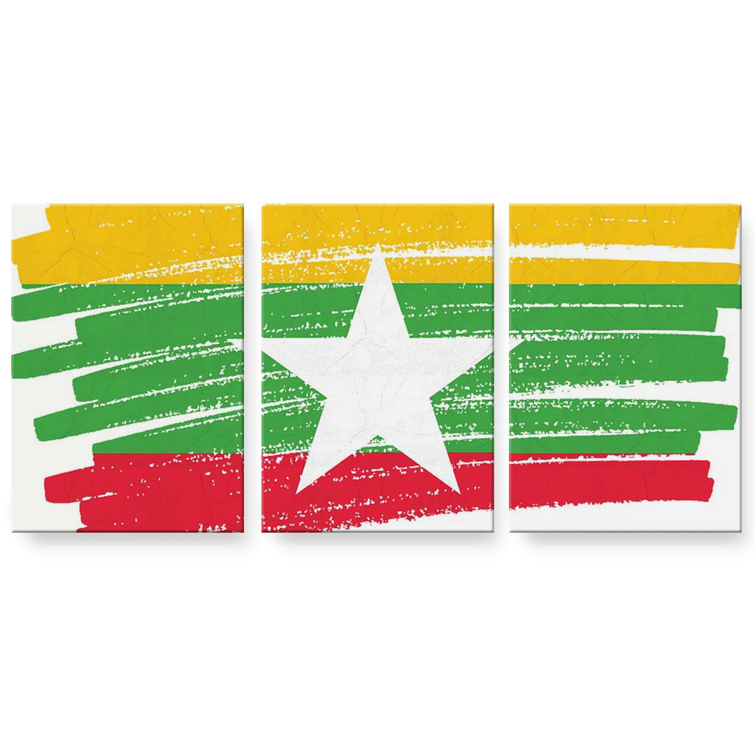 アートパネル 3連 3枚セット 絵 絵画 飾り igsticker 594mmx420mm A2 フォト 壁掛け 木枠 インテリア おしゃれ 018409 国旗 burma-myanmar ビルマ-ミャンマー