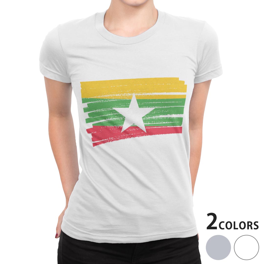 tシャツ レディース 半袖 白地 デザイン M L 白 ホワイト グレー Tシャツ ティーシャツ T shirt 018409 国旗 burma-myanmar ビルマ-ミャンマー