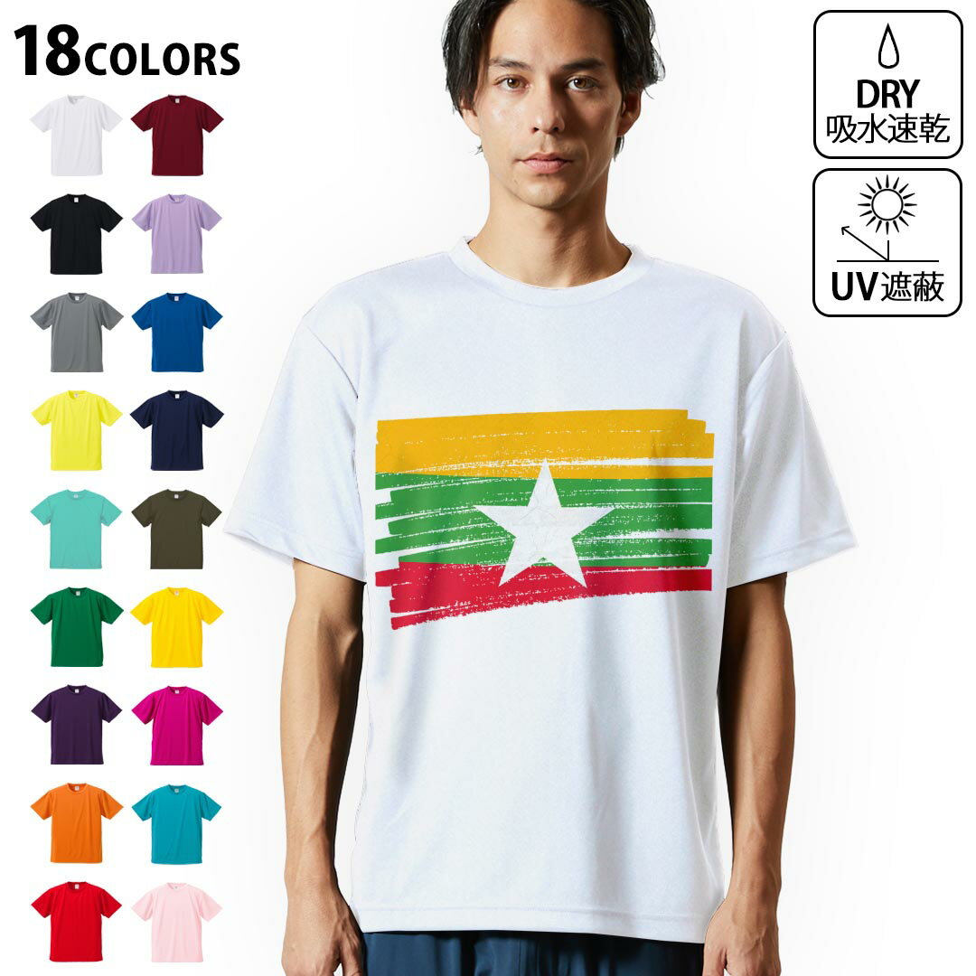 ドライTシャツ メンズ 吸水 速乾 DRY 選べる18カラー! 半袖 デザインドライTシャツ スポーツ ゆったり ティーシャツ T shirt 018409 burma-myanmar ビルマ-ミャンマー