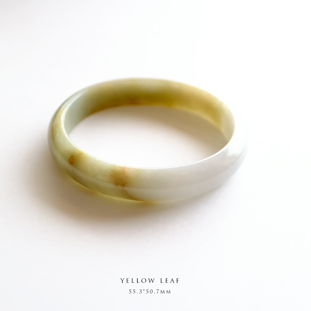 翡翠(ひすい)バングル (楕円形/内径55.3×50.7mm) 『YELLOW LEAF』イエロー&ホワイト翡翠 一点物 高品質 無着色 ミャンマー産天然ヒスイ ジェダイト 天然石 お守り 縁起物 5月誕生石 国石 パワーストーン 誕生日 記念日 【鑑別書付き】【送料無料】5102926