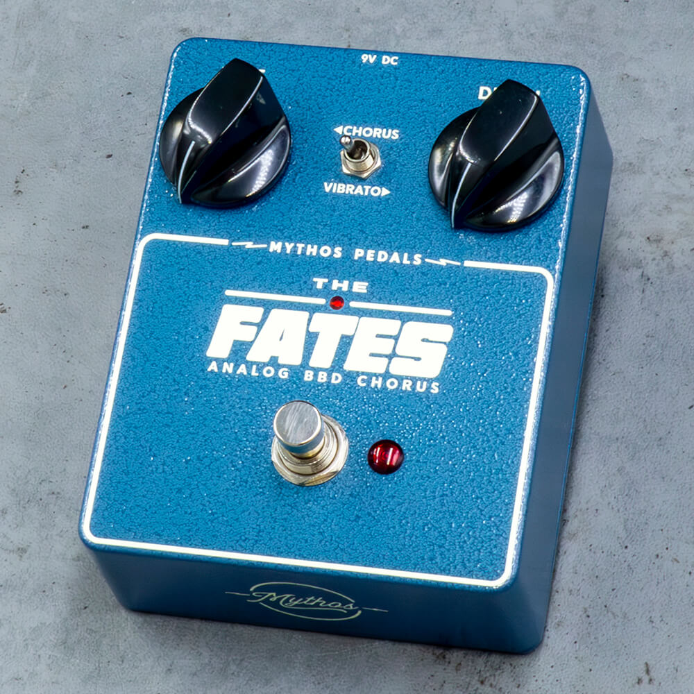 トピックスショッピングクレジット分割48回払いまで金利手数料0%!期間限定 2026年2月28日まで30,000円(税込)以上のお買い物が対象となります。本キャンペーンはクレジットカードでのお支払いは対象外となります。詳しくはお問い合わせください。アイテム説明日本製の象徴的な青いコーラスペダルをベースにしたThe Fatesは、誰もが知っていて愛しているクラシックペダルを、どんなプレイヤーのペダルボードにもぴったり合うように仕上げています。Fatesは、Rateノブと Depthノブによる拡張されたコントロール範囲を備えており、使いやすい2つのノブパッケージで最大限の柔軟性を提供します。Chorus/Vibratoスイッチを使用すると、回路のクリーンミックス部分をバイパスして、音楽性を保ちながら揺れを加える楽しいビブラートサウンドを得ることができます。象徴的なMN3207チップを使用したFatesは、薄く弱々しいことのない豊かで温かみのあるモジュレーショ ン・サウンドを持つ純粋なアナログ回路です。コーラス回路に送られる信号を強力に保つために、JFETバッファー/入力段を追加しました。この入力段はサウンドに適切なコンプレッションを与え、ドライブ回路と組み合わせると非常にうまく機能します。高品質のパネルマウントIn、Out、DCジャックを使用しているため、ペダルは信頼性を保ちます。The FatesのVibratoモードは、変調特性がそれほど劇的に変化しないように調整されています。そのモー ドの深さを変更したので、それほどひどい揺れになりません。Fatesにはペダルの表面にRate LEDも搭載されているため、ステージ上で回路に設定した速度を見失うことはありません。スペック■9VDC電源(センターマイナス)■消費電流約16mA■バッファードバイパススイッチング■モノラル入力と出力■筐体サイズ : 4.70” x 3.70” x 1.39”納期について売却時は迅速に商品情報の削除を心掛けておりますが、ショッピングページの更新までにタイムラグが生じ、ご注文のタイミングによっては商品のご用意ができない場合がございます。あらかじめご了承くださいますようお願い申し上げます。最強配送対象商品以外、納期のご確認はご注文前に「商品についての問合わせ」よりお問い合わせください。