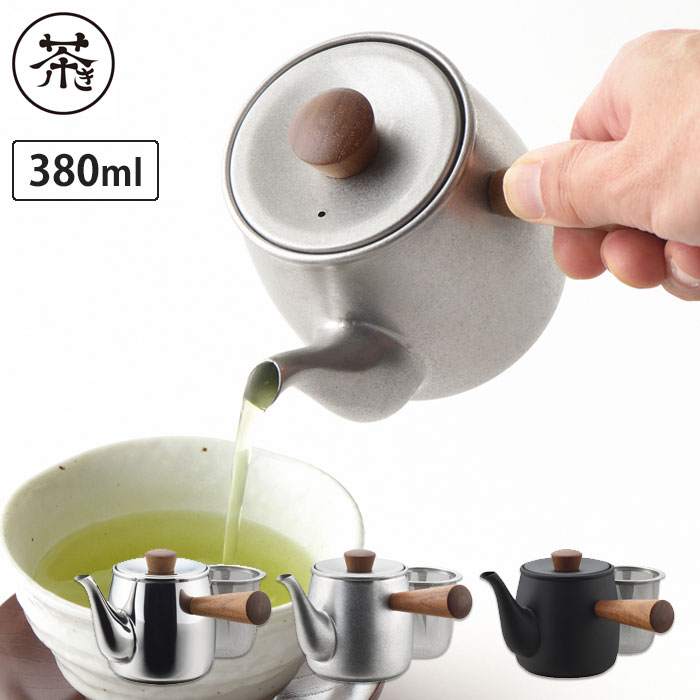 PICK UP BRAND ⇒メーカー希望小売価格はメーカーカタログに基づいて掲載しています●茶き 急須 小 ちょっとお茶を飲むのに程よいサイズのステンレス急須 18-8ステンレス製の茶こし網が付いています。 丈夫で保温性に優れています。 色うつりやにおいがつきにくいステンレス製のため、色々な味わいの日本茶を一つの急須で楽しめます。 1.色うつり・匂いうつりしにくい素材 本体には色うつり・匂いうつりしにくい18-8ステンレスを使用しているため、様々な味わい、色の違う日本茶を一つの急須で楽しめます。 2.暖かみのある天然木 ツマミとハンドルには、暖かみのある天然木を使用しています。心安らぐひとときを演出してくれるデザインです。 3.表面加工技術 急須には、「かがみ」「ざらめ」「くろいろ」の三種類の表面加工が施されています。 「かがみ」は新潟県燕市の研磨職人がピカピカに磨いています。 「ざらめ」は表面にストーンウォッシュという加工を加えアンティーク調の仕上げになっています。 「くろいろ」は和室の土壁のようなざらざらとした質感の塗料を使い和の雰囲気を出しています。 同じ形でも仕上げ方法の違いで、それぞれが魅力ある急須になっています。 バリエーション かがみ CHA-1 ざらめ CHA-2 くろいろ CHA-3 サイズ (約)W15.0×D11.8×H9.3cm 重量 (約)190g 容量 (約)0.38L 材質 本体・蓋・茶こし/18-8ステンレス、ハンドル・ツマミ/天然木 (黒塗装の種類/アクリル樹脂焼付塗装) 製造元 宮崎製作所 備考 ●日本製 ●電子レンジではご使用頂けません。 ●直火不可。熱源にはかけられません。 ●ざらめ急須は、表面に小さな凹凸を施しアンティークな質感を表現しています。 ●天然木を使用しているため、写真の色と異なる場合があります。