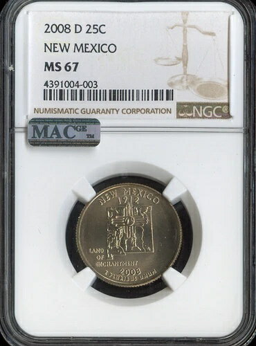 2008-D ニューメキシコ クォーター NGC MS67 ビジネス MAC 品質