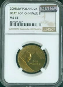 2005 ポーランド 2 ズロテ 教皇ヨハネ・パウロ 2 世の死 NGC MS-65 MAC 品質 ??