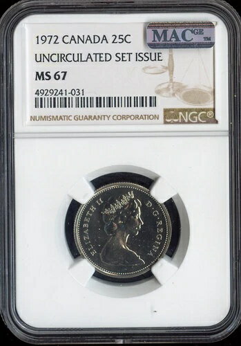 1972年カナダ25セント25C NGC MS67 MAC品質