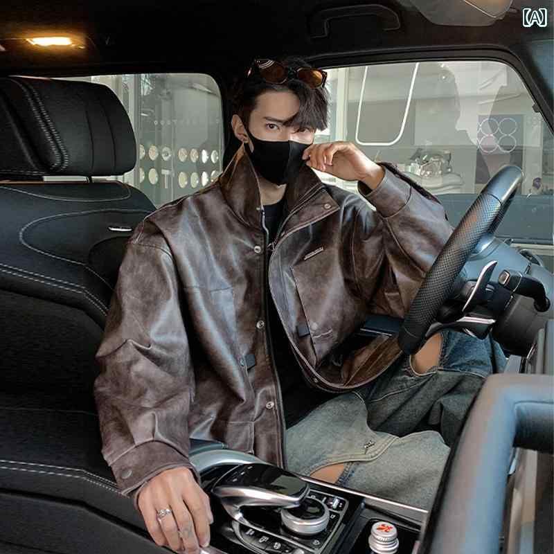 レザー ジャケット おしゃれ BJ Maillard ブラウン アメリカン モーター サイクル PU レザー ジャケット メンズ スタンドカラー ハイエンド ショート 大きいサイズ
