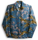 アロハシャツ メンズ 大きいサイズ 長袖 MAKANA LEI マカナレイ AMT052EXLS サックスブルー 水色 和柄 桜 虎 レディース 人気 おしゃれ イベント 衣装 お祝い プレゼント ギフト 父の日 旅行 シルク ジャガード 開襟 送料無料