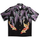 半袖アロハシャツ|MAKANA LEI(マカナレイ)|AMT068BK|ブラック(黒)|メンズ|和柄|鯉柄・藤花柄|シルク100%|開襟(オープンカラー)|送料無料商品