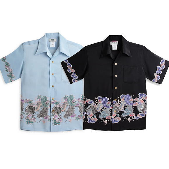 MAKANALEI 【 Dragon border 】 龍柄 ちりめん シルク100%【マカナレイ】メンズ&レディース 半袖アロハシャツ