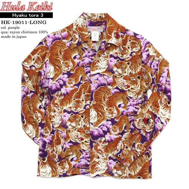アロハシャツ|フラケイキ ハワイアン(HULA KEIKI HAWAIIAN)|マカナレイ(MAKANALEI)の姉妹ブランド|HK-19011 百虎3(HYAKU TORA)|パープル|メンズ|レーヨン チリメン100%|開襟(オープンカラー)|フルオープン|長袖|アロハタワー(アロハシャツ販売)