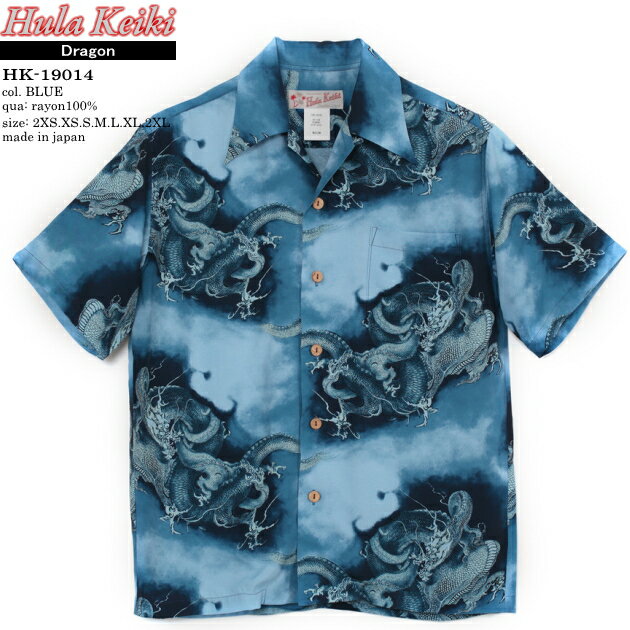 アロハシャツ|フラケイキ ハワイアン(HULA KEIKI HAWAIIAN)|マカナレイ(MAKANALEI)の姉妹ブランド|HK-19014 ドラゴン(DRAGON)|ブルー|メンズ|レーヨン(フジエット)100%|開襟|フルオープン|半袖|アロハタワー(アロハシャツ販売)
