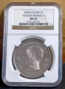 2004 シエラレオネ 南アフリカ BU UNC NELSON MANDELA 1 ドル $1 NGC MS64 すごい!
