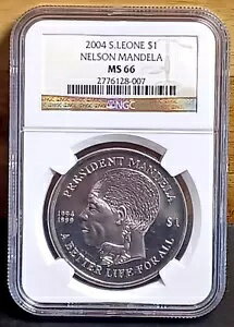2004 シエラレオネ 南アフリカ BU UNC NELSON MANDELA 1 ドル $1 NGC MS66 すごい!