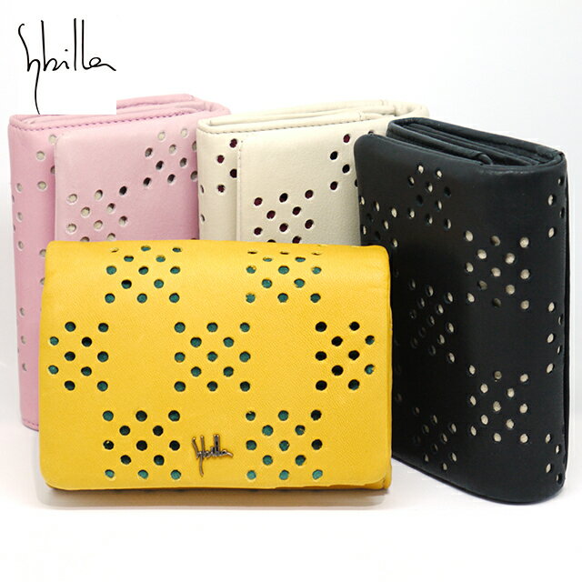 シビラ 財布 レデイース 二つ折り マルカ Sybilla Marca 5470241 ブランド 牛革ギフト パンチング バイカラー ブラック アイボリー ピンク マスタード かわいい