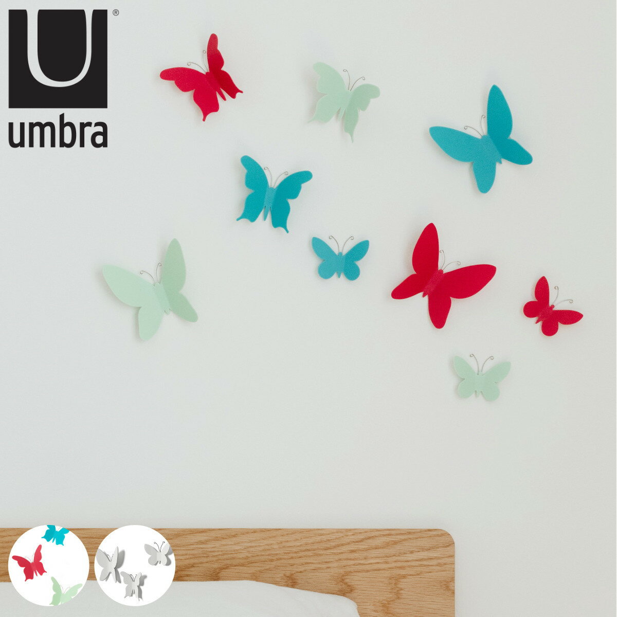 umbra ウォールデコ マリポサ 9個セット ( ウォールシール ウォールデコレーション 壁飾り シール はがせる 壁シール アンブラ ) 【3980円以上送料無料】