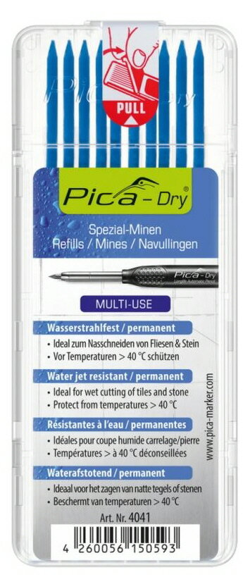 【文房具・建築現場用品】PICA MARKER(ピカマーカー)建築用シャープペンシル"Dry"用替芯 2.8mm 2B 青 10本入 4041【620】
