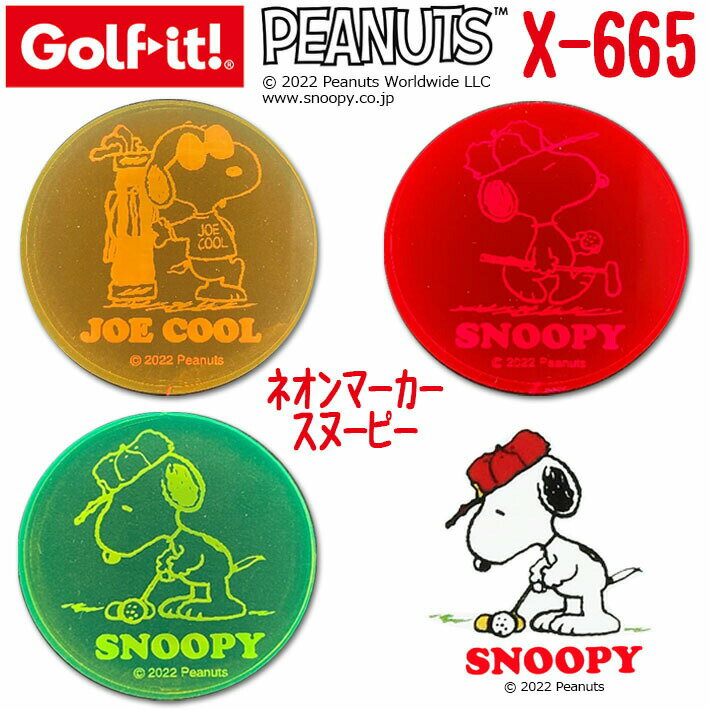 [エントリーでポイント10倍 2025/11/26迄]【ネコポス対応】【取り寄せ商品】【LITE/ライト】ネオンマーカー スヌーピー Neon Marker SNOOPY X-665 ゴルフマーカー グリーンマーカー かわいい マーカー 3柄 直径40mm 厚さ5mm 1個入 ゴルフ用品 ラウンド用品【Golf-it!】