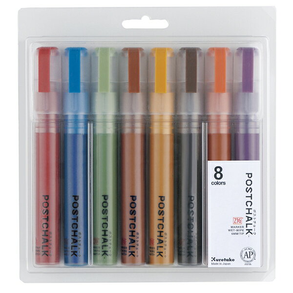 【ブラックフライデーに加え当店期間中 ポイント10倍】 【取り寄せ品】呉竹 ZIG POSTCHALK MARKER WET-WIPE 6MM TIP ディープ 8色セット POST-500A/8VD ディープ8色セット
