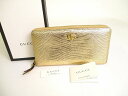 【未使用保管品】 グッチ GUCCI GG マーモント リザード ラウンドファスナー 長財布 ジップアラウンドウォレット メンズ レディース ゴールド 【中古】