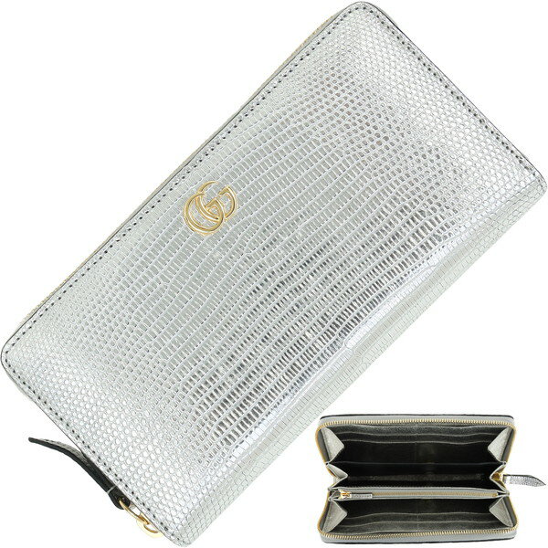 【10%OFF】 グッチ 長財布 ダブルG ジップアラウンドウォレット GGマーモント リザード シルバー ゴールド金具 GGロゴ グッチ ラウンドファスナー長財布 GUCCI グッチ 財布 レディース メンズ ラウンドジップ ロングウォレット ブランド