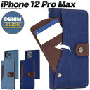 【iPhone 12 Pro Max用】デニムスライドカードポケット手帳型ケース(アイフォンケース iphone12プロマックス アイフォン12promax 紺青 ストラップ TPU 定期入れ カード入れ 通学 シンプル かっこいい 父母 息子 誕生日プレゼント 楽天モバイル【送料無料】[M便 1/6]