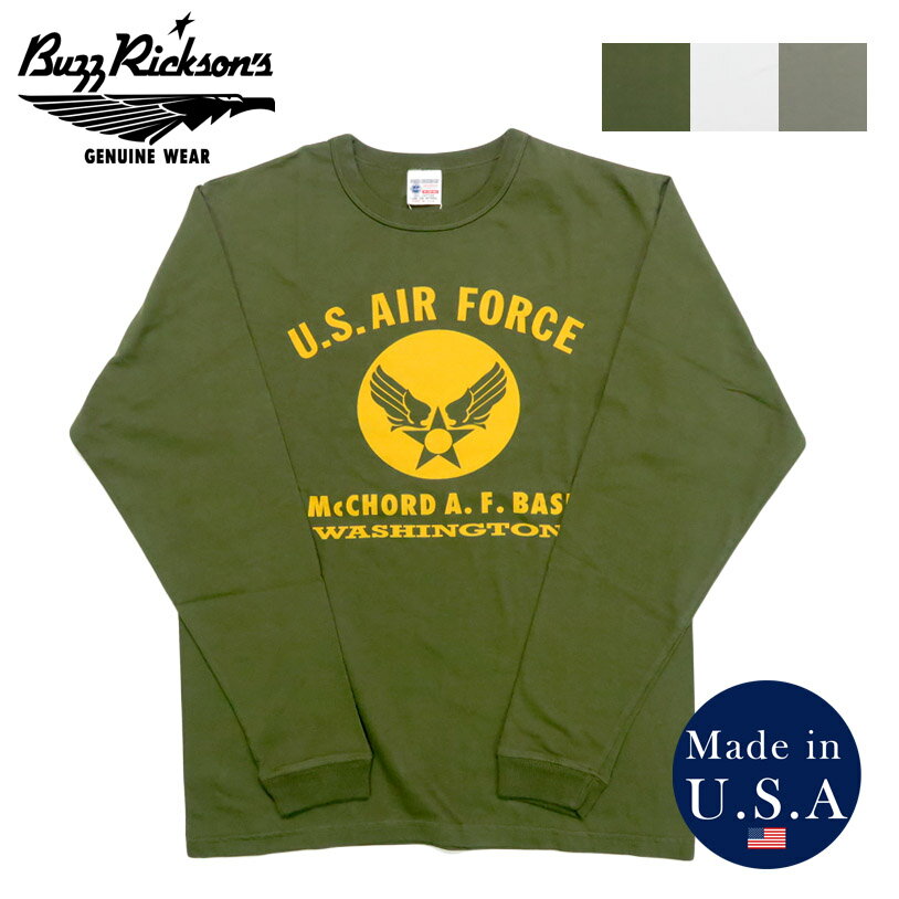 BUZZ RICKSON'S バズリクソンズ BR69626 L/S T-SHIRT McCHORD A.F. BASE プリント長袖ミリタリーTシャツ AIR FORCE アメリカ製ボディワシントン州ピアース郡 マッコード空軍基地 ミリタリーTシャツ