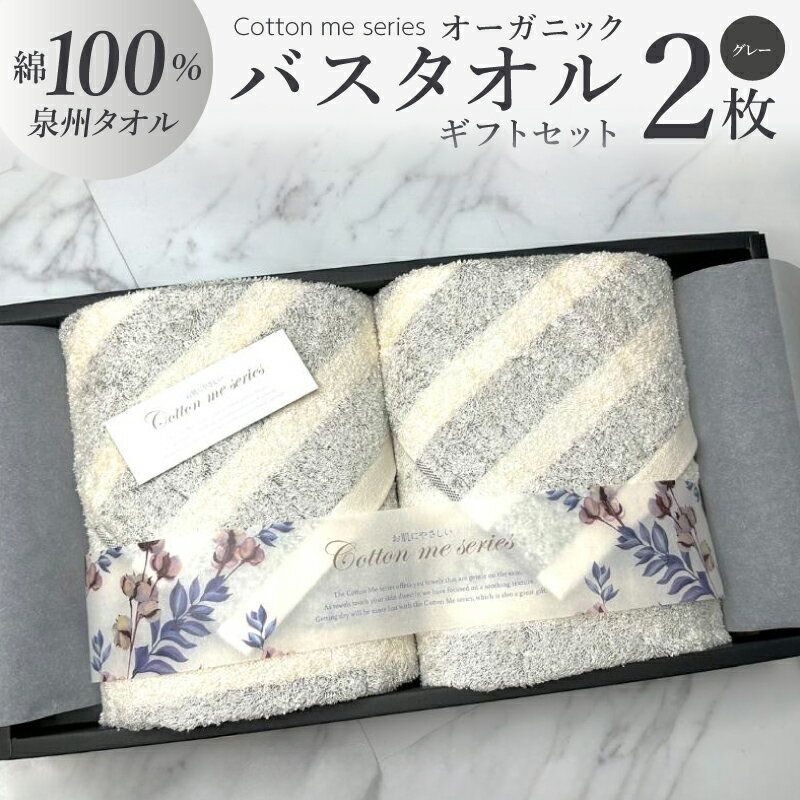 【ふるさと納税】タオル バスタオル 2枚 セット グレー 綿100% 日本製 ボーダー オーガニック オーガニックタオル かすみシリーズ ギフトセット ギフトボックス入り ギフト 贈答用 プレゼント cotton me 泉州タオル 大阪府 泉佐野市 送料無料
