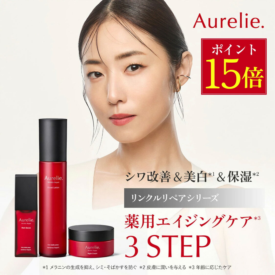 【BF限定★P15倍】3STEP薬用エイジングケアセット 医薬部外品【MEGUMI開発】Aurelie (オレリー) スキンケア 化粧品 スキンケア 保湿 エイジングケア 美容液 顔 保湿 黒ずみ 低刺激 ブースター アルコールフリー 高濃度 ハリ