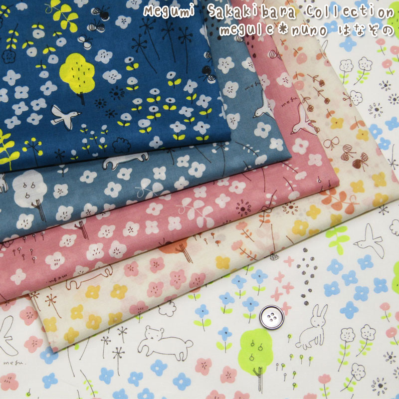 Megumi Sakakibara Collection megu le*nuno はなぞの(単位50cm)どうぶつ/花柄/生地/綿/コットン/プリント