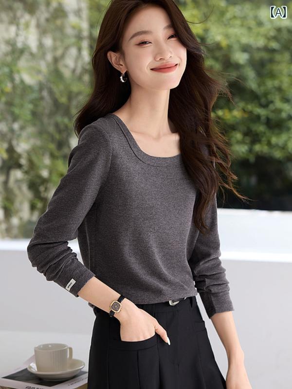 セーター スクエアネック トップス レディース 春秋 ファッション シンプル カジュアル 無地 ミニマル 長袖 スタイリッシュ ゆったり