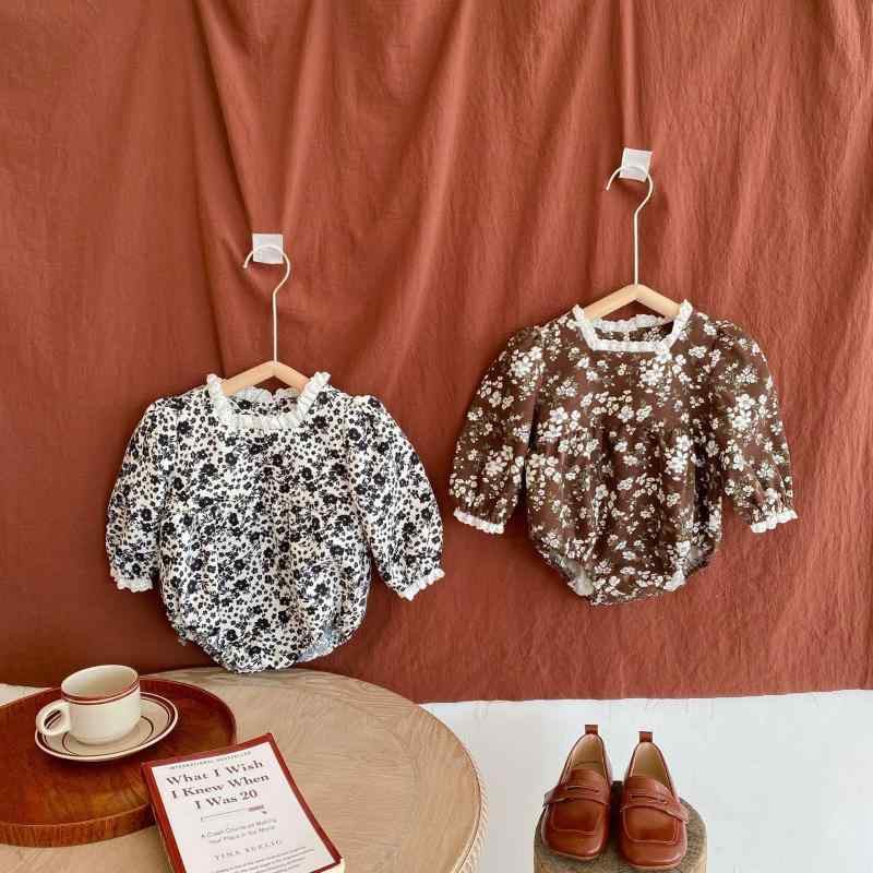 ロンパース キッズ 子供用 おしゃれ ファッション 春秋 女の子 赤ちゃん 幼児 花柄 長袖 レース襟 ジャンプスーツ かわいい レジャー プルオーバー