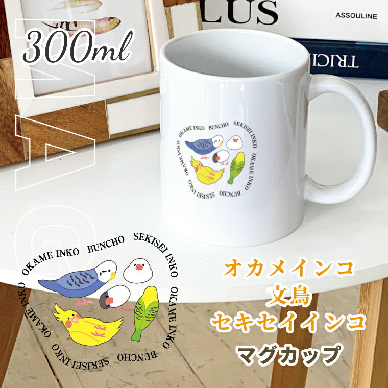 OKAMEINKO&BUNCHO&SEKISEIINKO マグカップ 300ml オカメインコと文鳥とセキセイインコの3匹 陶器製 食器 キッチン コーヒーカップ 誕生日 プレゼント ギフトグッズ かわいい おしゃれ アニマル 小鳥 鳥好きギフト 小鳥グッズ Mug 【名入れ対象外】